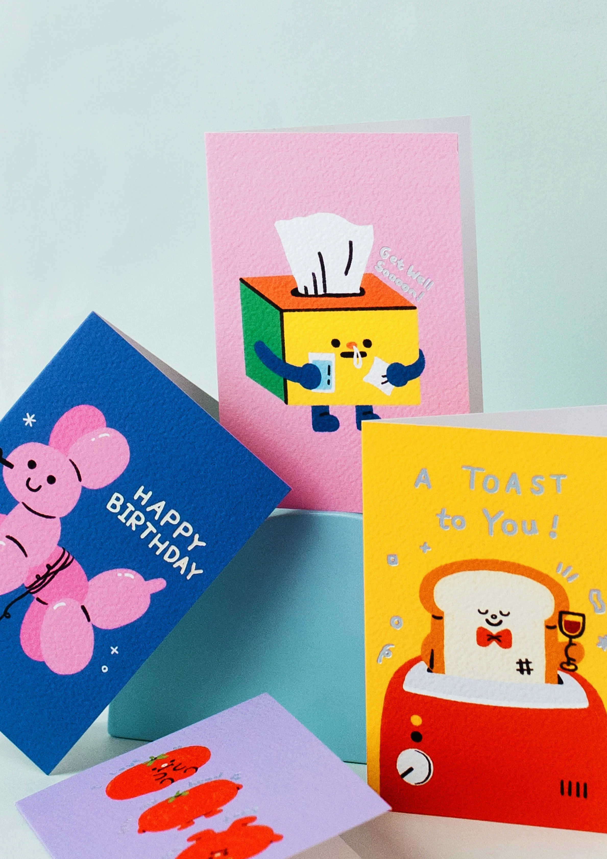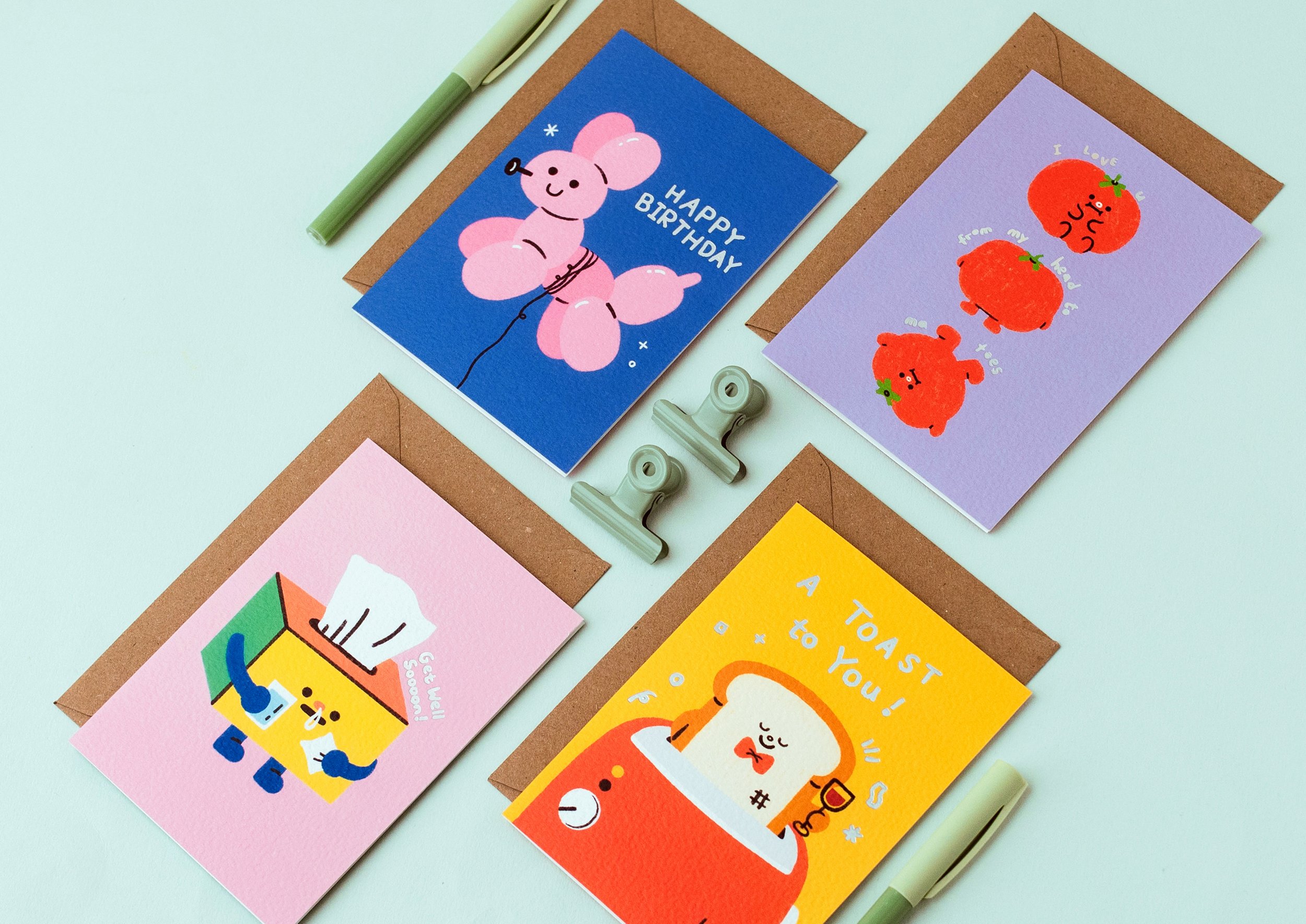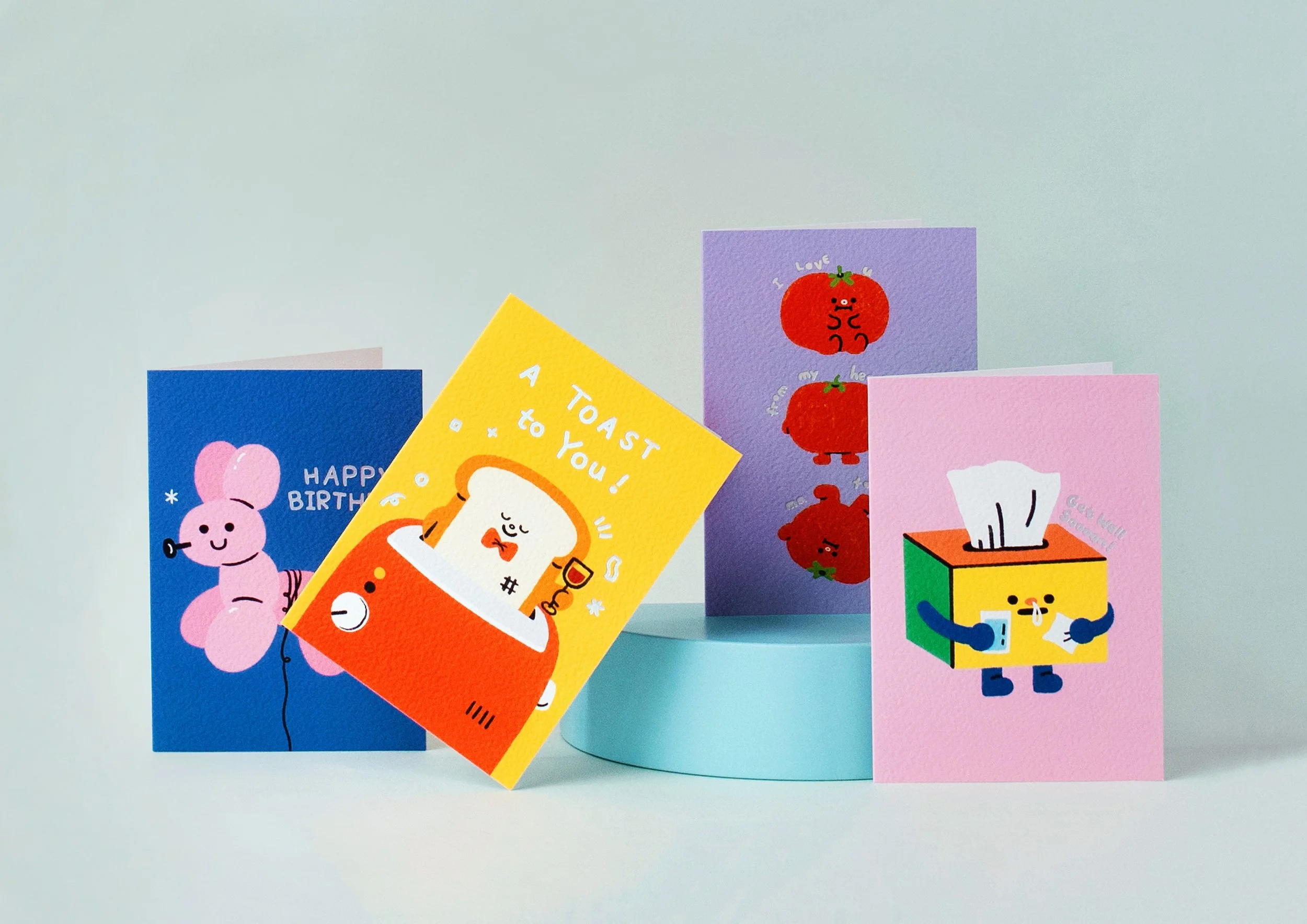 Rumble Cards is a UK-based greeting card brand known for playful, illustrated designs. I worked with Rumble Cards on a card collection, translating my everyday-inspired illustrations into printed designs that feel warm, relatable, and light-hearted.